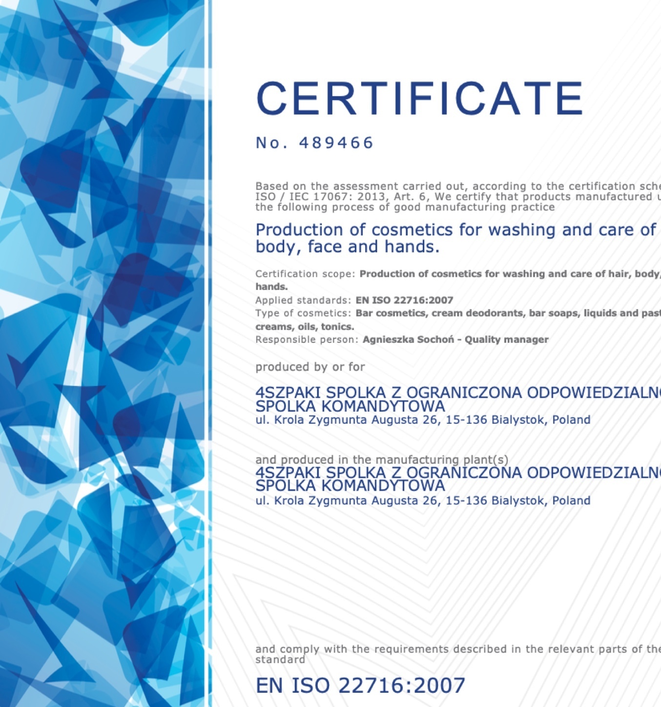 全系列產品皆由品牌實驗室自主研發,並由符合 GMP 標準的工廠於波蘭當地手工製造。