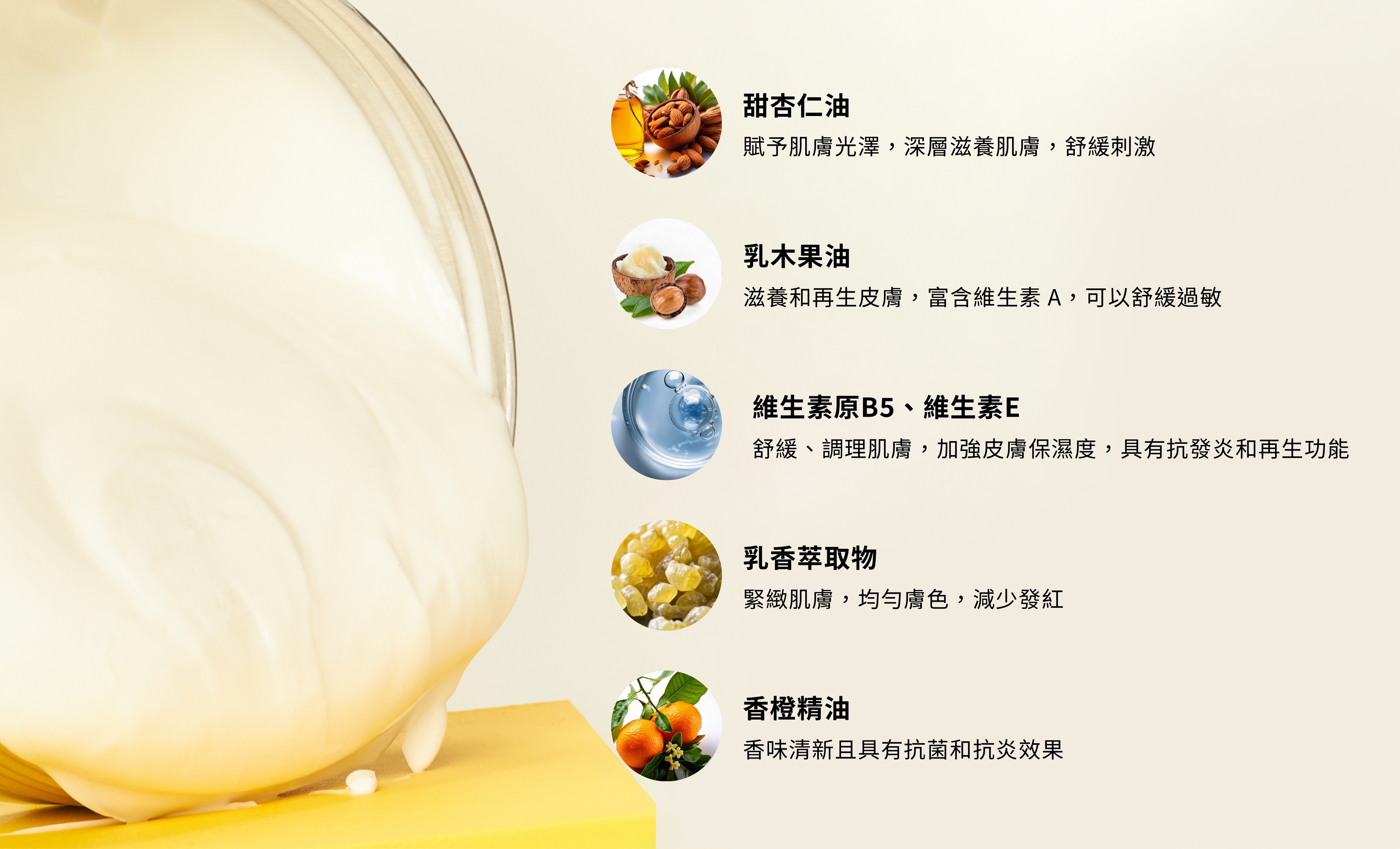 堅持使用純淨、溫和的配方,我們的產品不添加任何化學品與人工香料,以最天然原始的成分滿足肌膚所需。