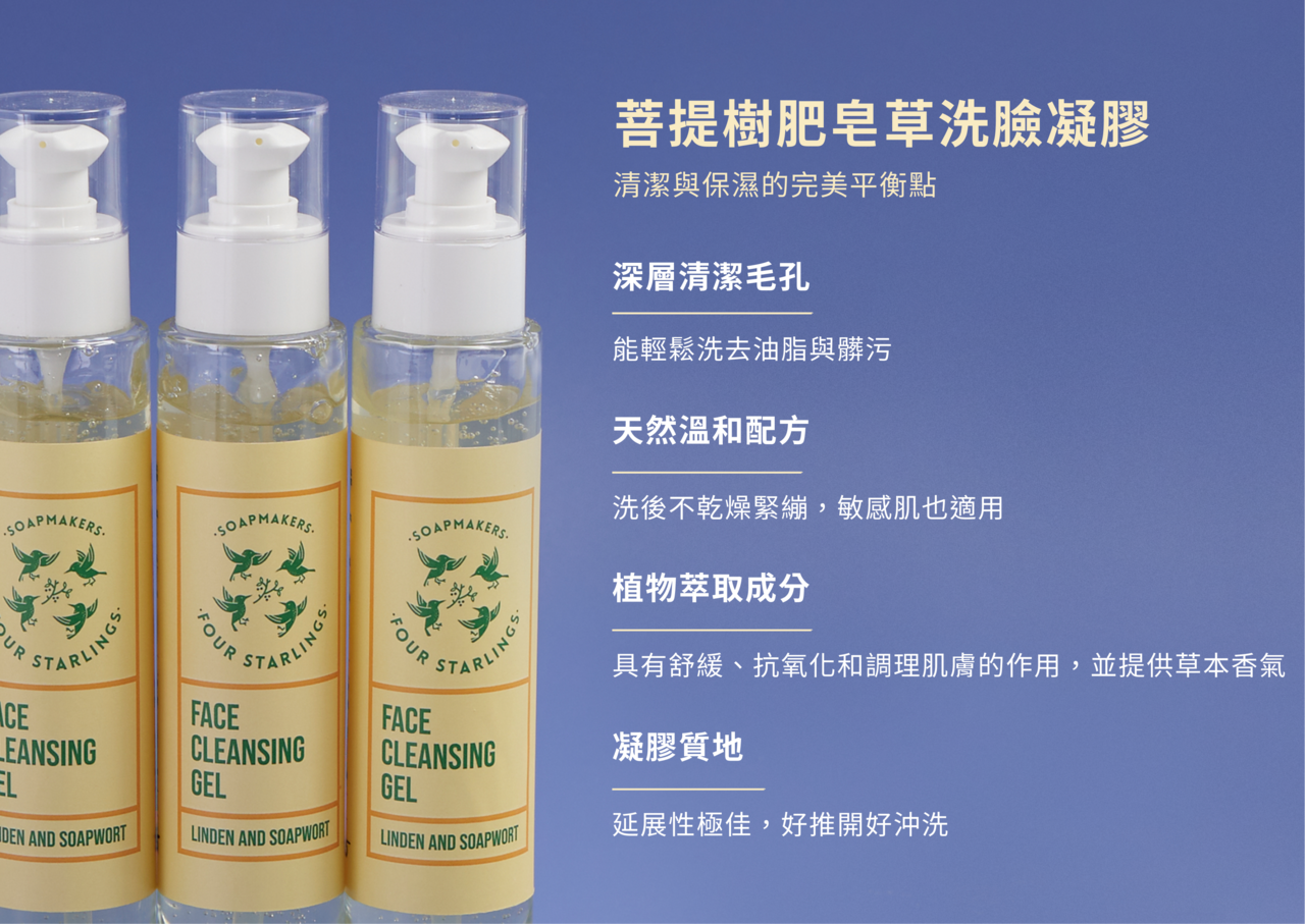 這款專為中性、乾性及敏弱肌設計的洗臉凝膠,採用純淨的植萃配方,利用菩提花、肥皂草、甘草與白樺茸萃取的自然力量,在洗淨臉部油脂與輕彩妝的同時,能有效安撫肌膚的不適感。添加的亞麻籽精華與水解澱粉能幫助強化物理屏障並鎖住水分,洗後膚觸平滑細緻,不會有乾澀緊繃的負擔;搭配淡淡的菩提花清香,讓每天早晚的清潔過程,變成一種簡單、放鬆的日常習慣。