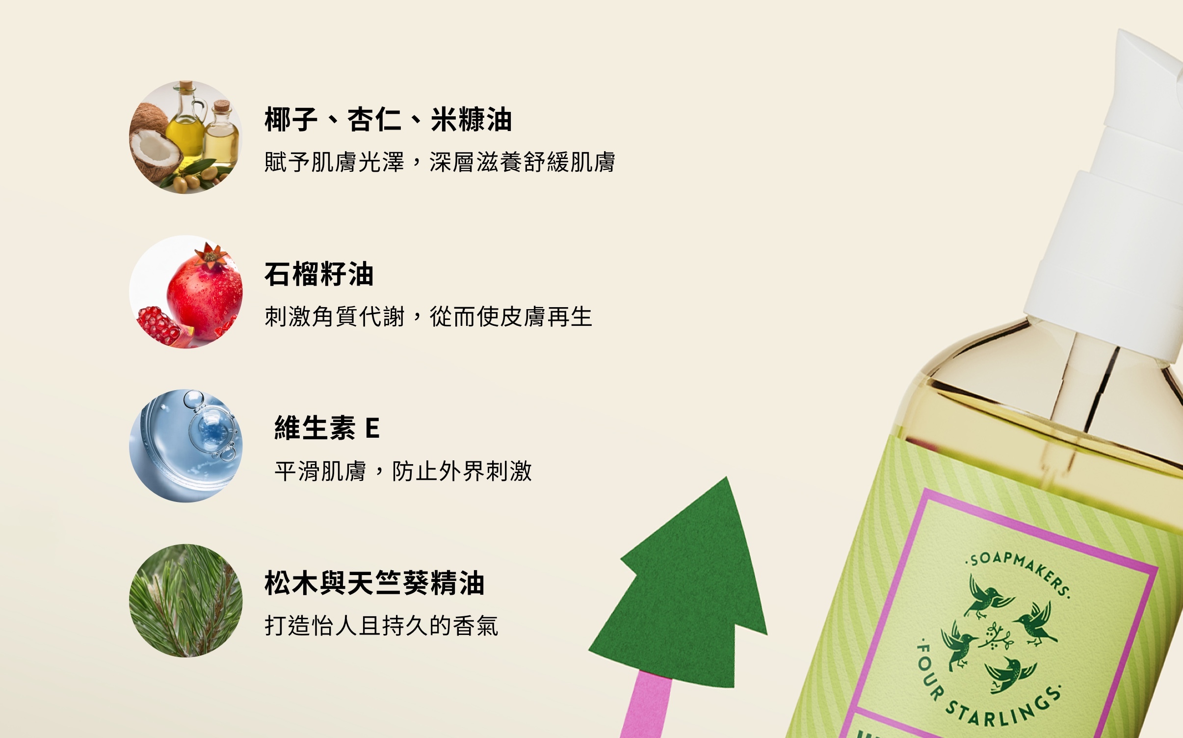 ▪️ 多種滋養油的組合,讓皮膚可以滋養、充滿光澤保持水嫩